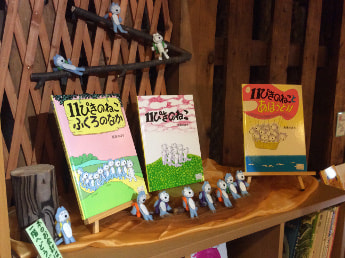 こちらはご存知「11ぴきのねこ」の皆さん(人形は非売品です)。>