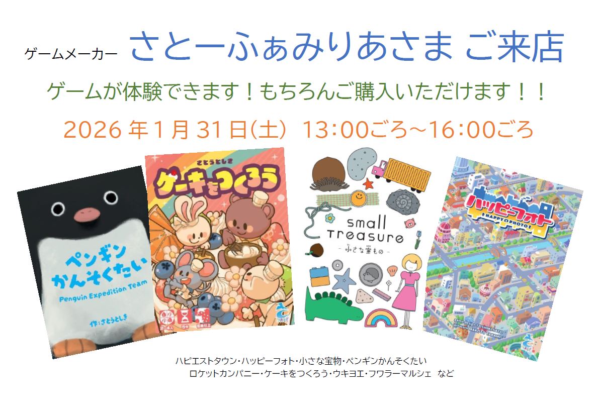 *1月31日は、さとーふぁみりあさまもご来店予定です。