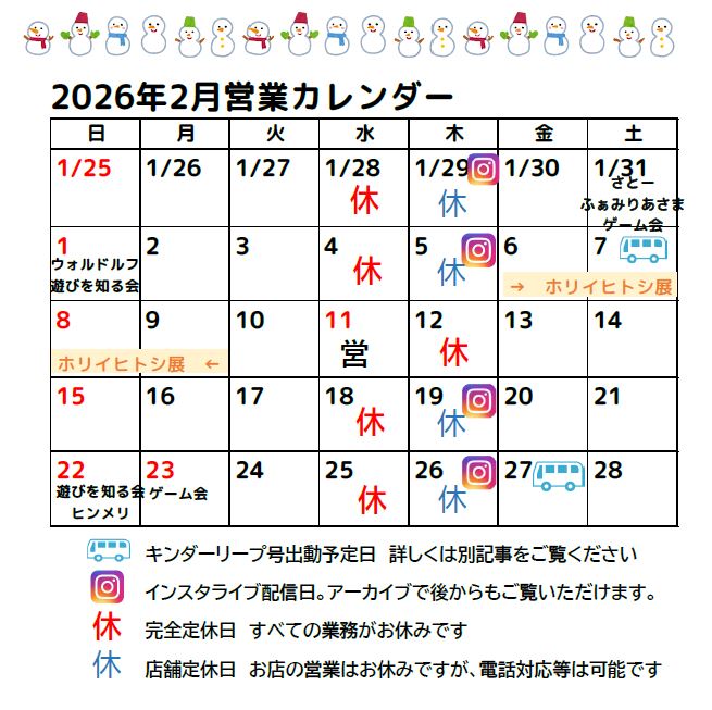 2026.01.27 2026年1月末~2月 お店とキンダーリープ号予定