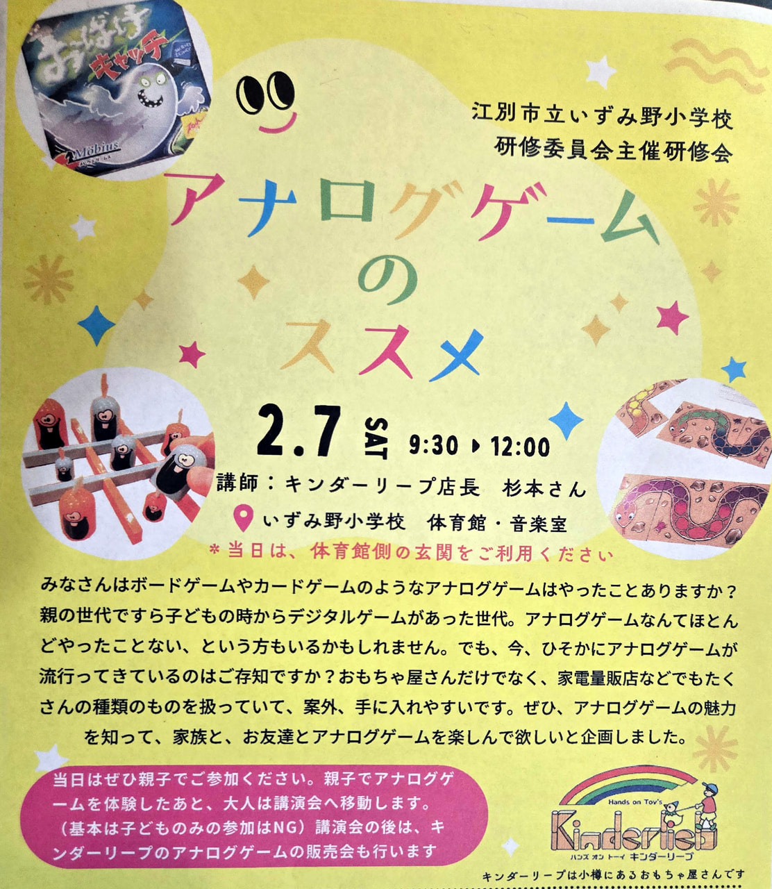 2026年2月7日(土)江別市いずみ野小学校さまで開催される校内行事に、一般の方もご参加いただけることになりました。