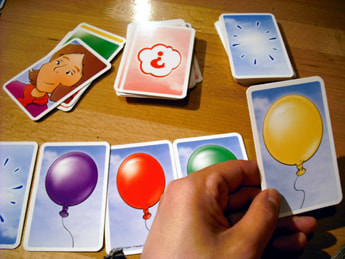 同じ色の風船カードが自分の前にあったら、裏に返して「風船がなくなった絵」にします。